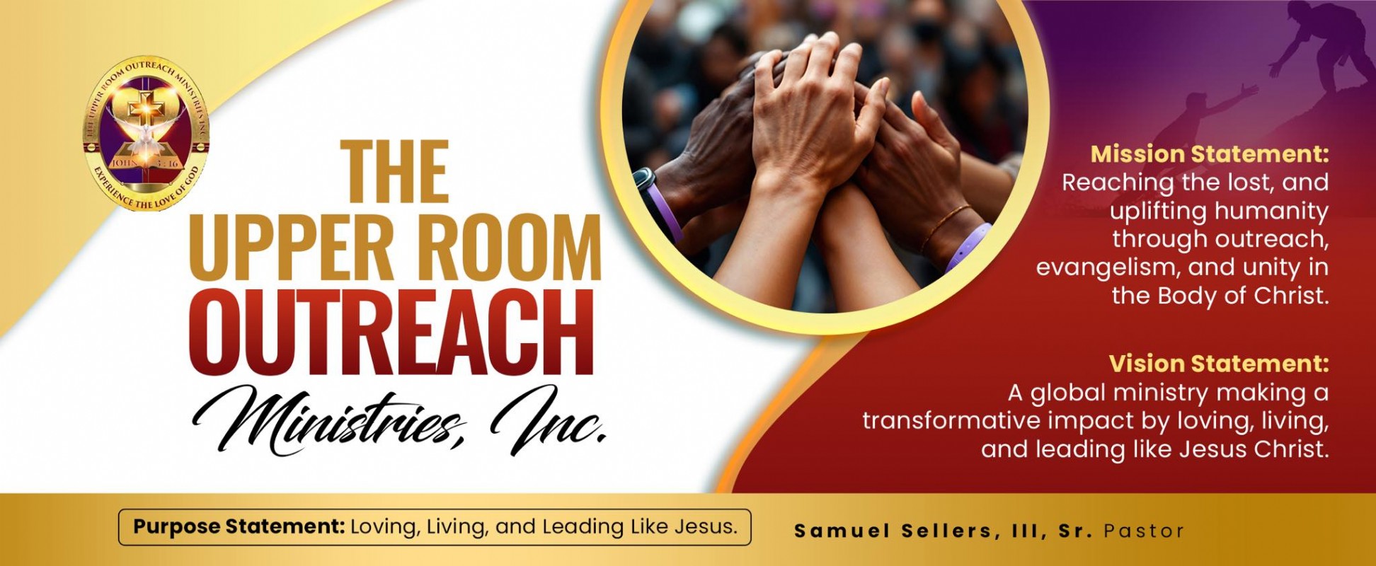 The Upper Room Outreach Ministries, Inc. is a non-denominational ministry founded in 2004 as a multipurpose facility for Christian related events. In July of 2009, Pastor and Evangelist Sellers began full time outreach ministry, fulfilling their mission is to reach out to a lost, hurting, and dying humanity through outreach ministry and unity in the body of Christ.
